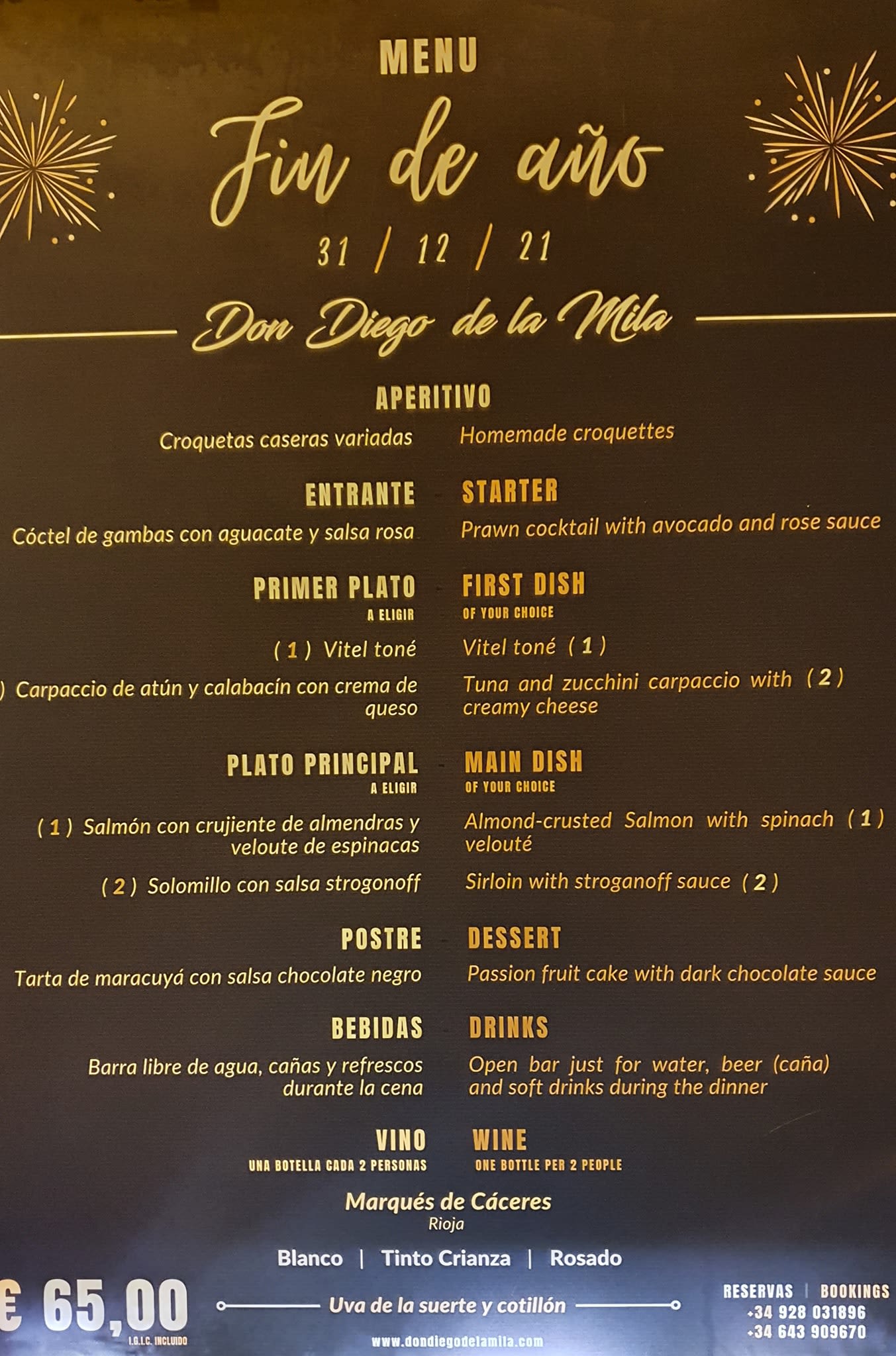 These are some of the special menus on offer for New Year's in restaurants in Las Palmas.